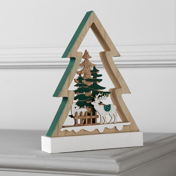 Светодиодная фигура «Ёлка с оленями» 17 × 23.5 × 5 см, дерево, батарейки АААх2 (не в комплекте), свечение тёплое белое