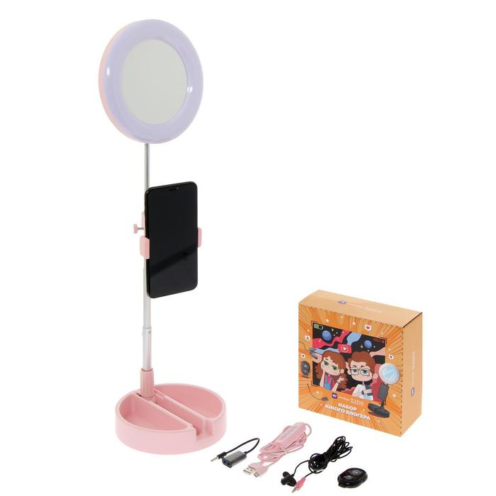 Набор Юного Блогера Windigo KIDS CB-98, лампа на штативе, микрофон, пульт, линзы,СЗУ,розовый