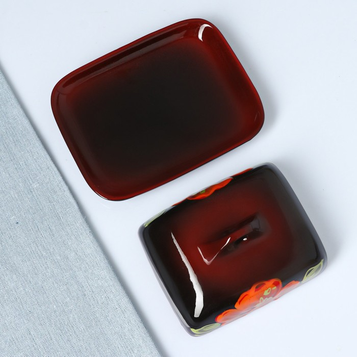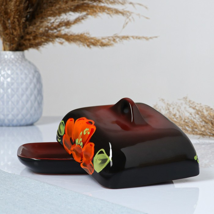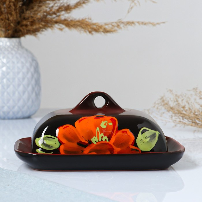 Масленка "Псковская" 18х14х8см, мак на черном