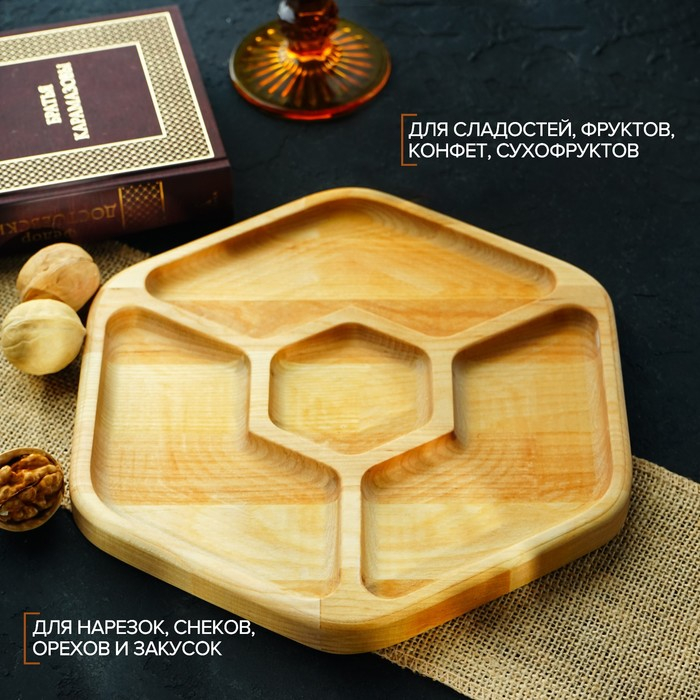 Никак не можете отучить себя от вредных перекусов? Изящная менажница из натурального дерева не даст вам пройти мимо орешков и сухофруктов. Изделие станет стильным и уютным элементом вашей кухни и незаменимым аксессуаром для сервировки стола.