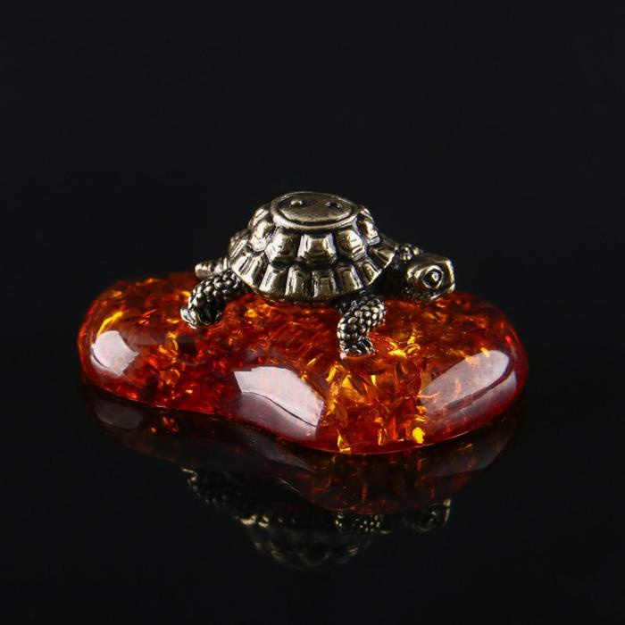 Сувенир "Черепашка Инь-Янь", большая, латунь, янтарная смола, 1,2х1,7х2,2 см