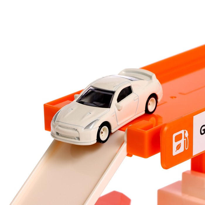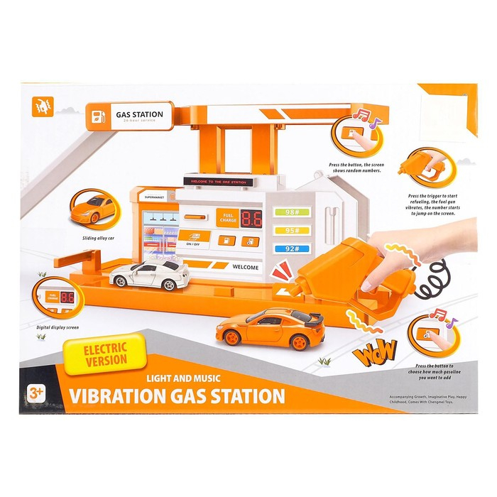 Парковка «Заправочная станция» пополнит топливо в любимой машинке малыша. Транспортный комплекс оснащён заправочной колонкой с возможностью оплаты и выбора количества топлива. Пистолет вибрирует при заправке.