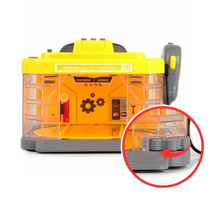 Игрушечная парковка-автомойка «Стройка» отмоет сильные загрязнения спецтехники после рабочей смены. Транспортный комплекс оснащён поворотным механизмом, верхним поливом и рацией.