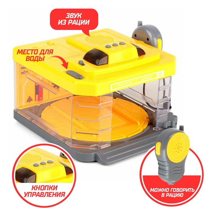 Парковка-автомойка «Стройка», с машинкой и рацией, поливает водой, свет и звук, машина МИКС