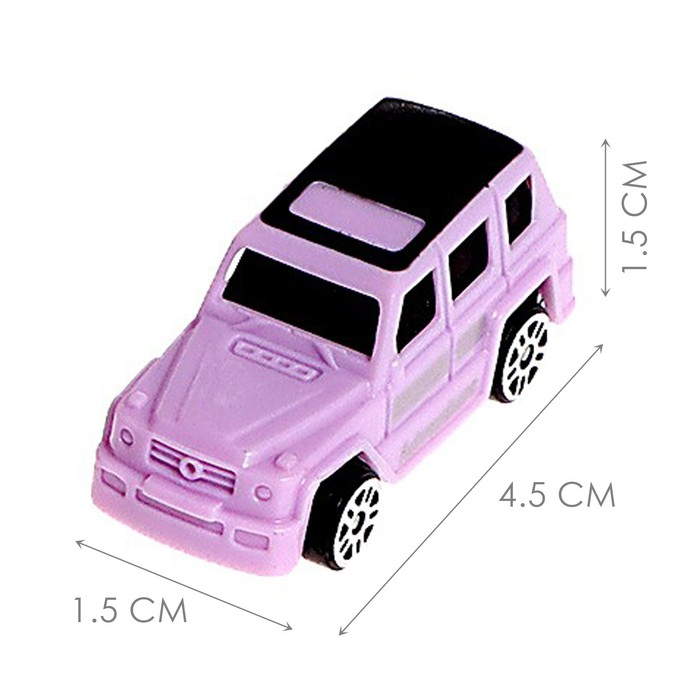 - В комплекте 8 машинок. Размер каждой: 4,5 × 1,5 × 1,5 см.