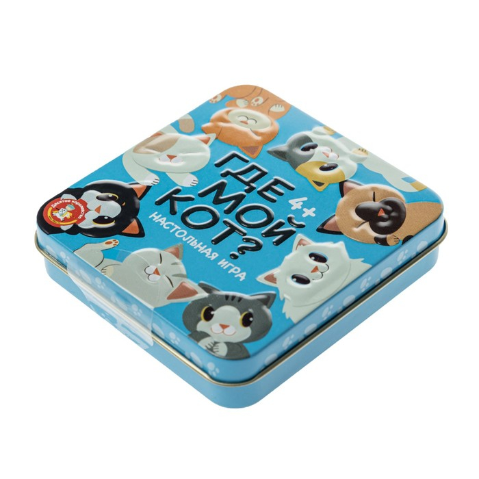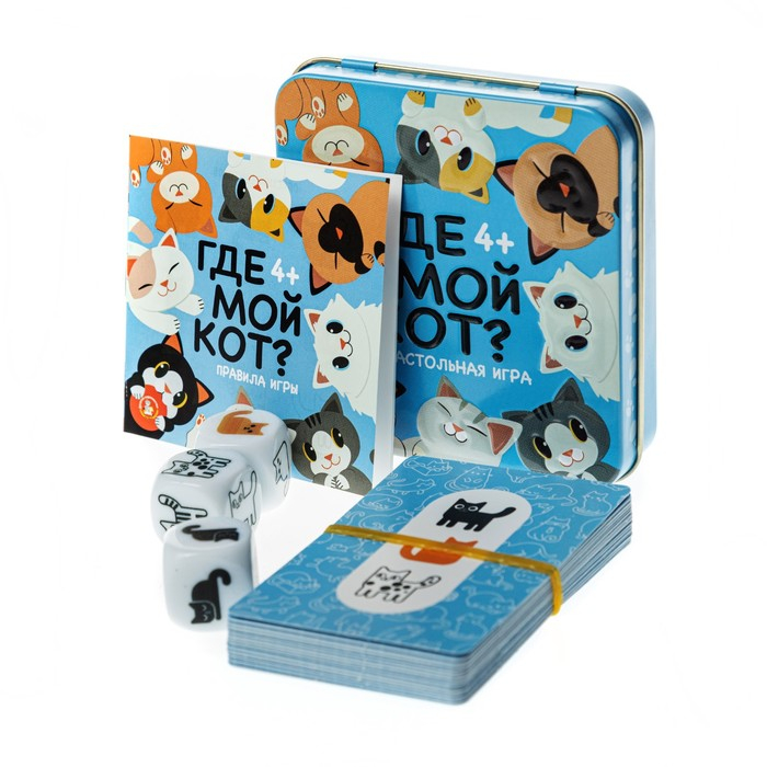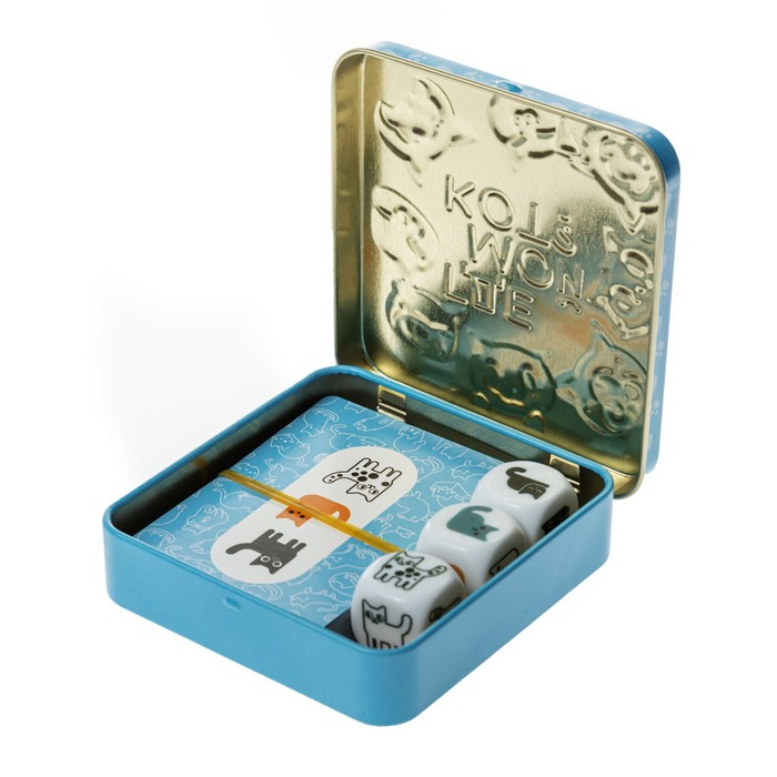 Настольная игра «Пластиковые кубики. Где мой кот?», жестяная коробочка