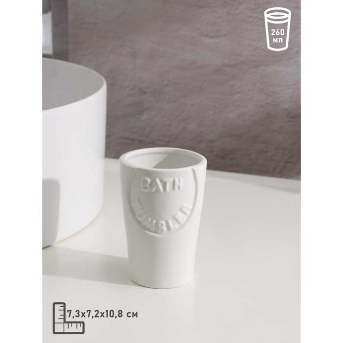 Набор аксессуаров для ванной комнаты Доляна «Цветочный барельеф», 4 предмета (дозатор 270 мл, мыльница, 2 стакана 210 мл), цвет белый