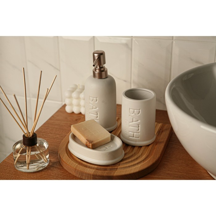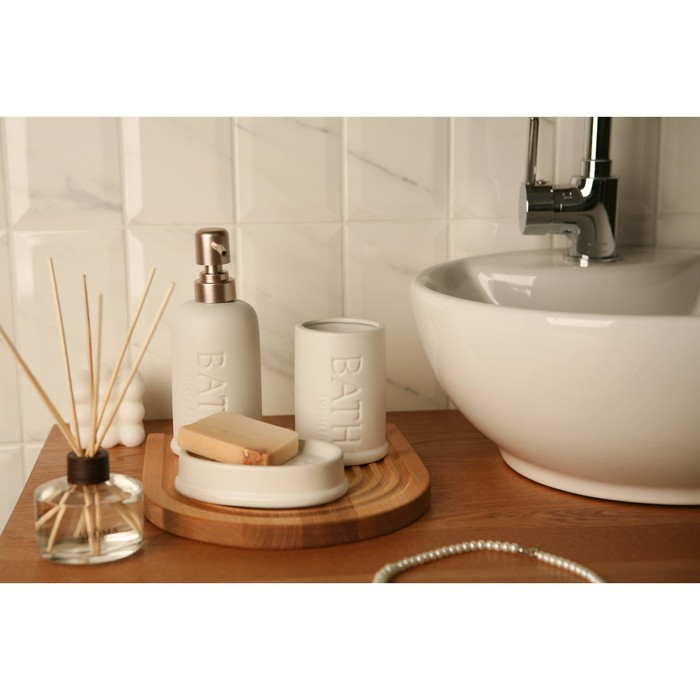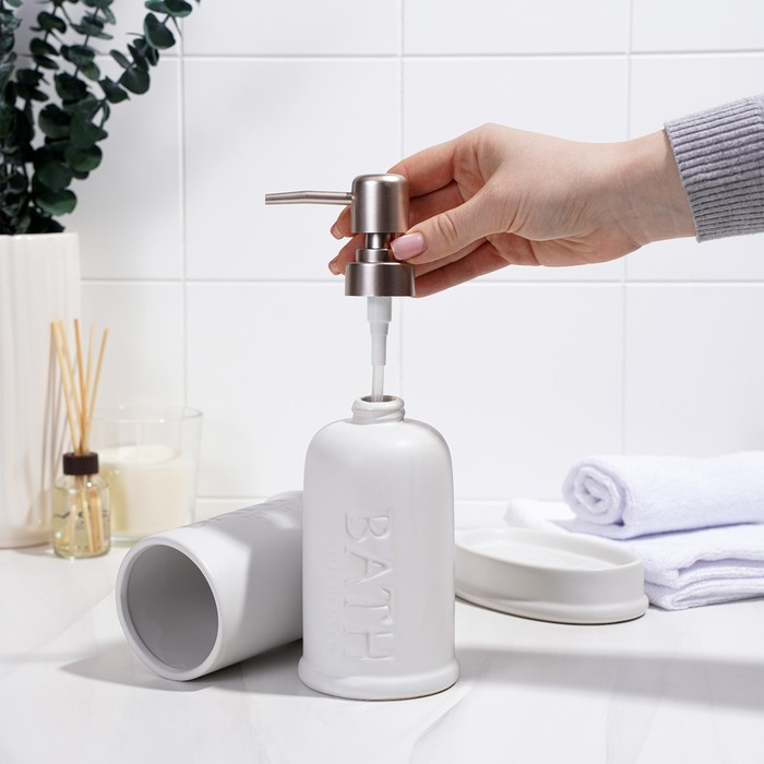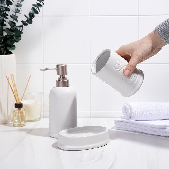 Набор аксессуаров для ванной комнаты SAVANNA «Бэкки», 3 предмета (мыльница, дозатор для мыла 400 мл, стакан), керамика, цвет белый