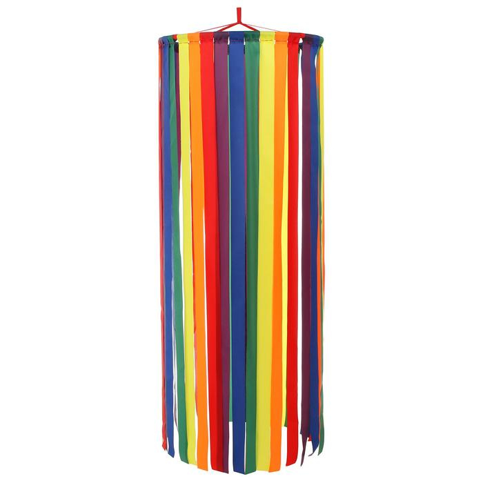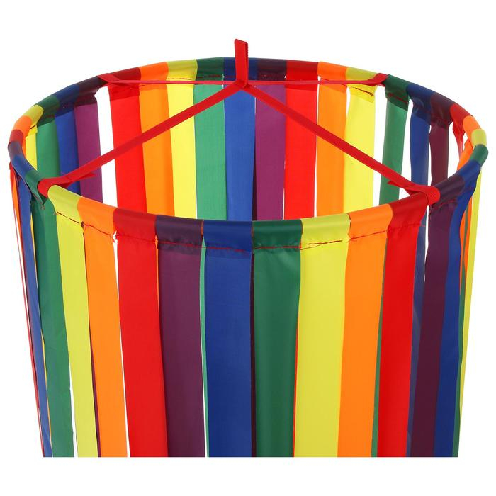 Инвентарь представляет собой круглый каркас на котором закреплены ленты разных цветов. Ленты расположены плотно друг к другу, таким образом создаётся подобие разноцветного шатра.