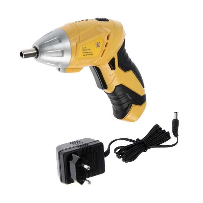 Аккумуляторная отвертка ТУНДРА, 3.6 В, 1.3 Ач, Li-lon, 3 Нм, 200 об/мин, индикатор заряда