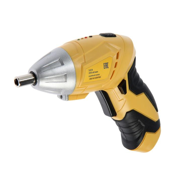Отвертка аккумуляторная ТУНДРА ВДОМ, 3.6 В, Li-ion, 1.3 Ач, 200 об/мин, 3.5 Нм, HEX 1/4"
