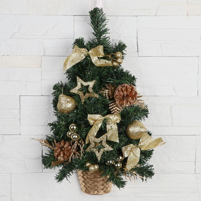 Ёлка декор настенная "Звёзды шишки" 45 см, золото