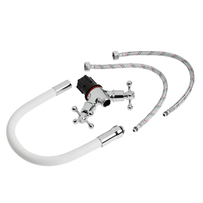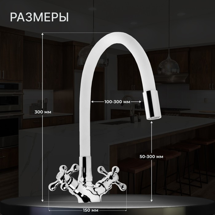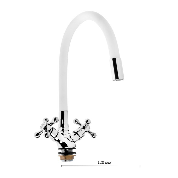 Смеситель для кухни ZEIN Z2103, двухвентильный, силиконовый излив, белый/хром