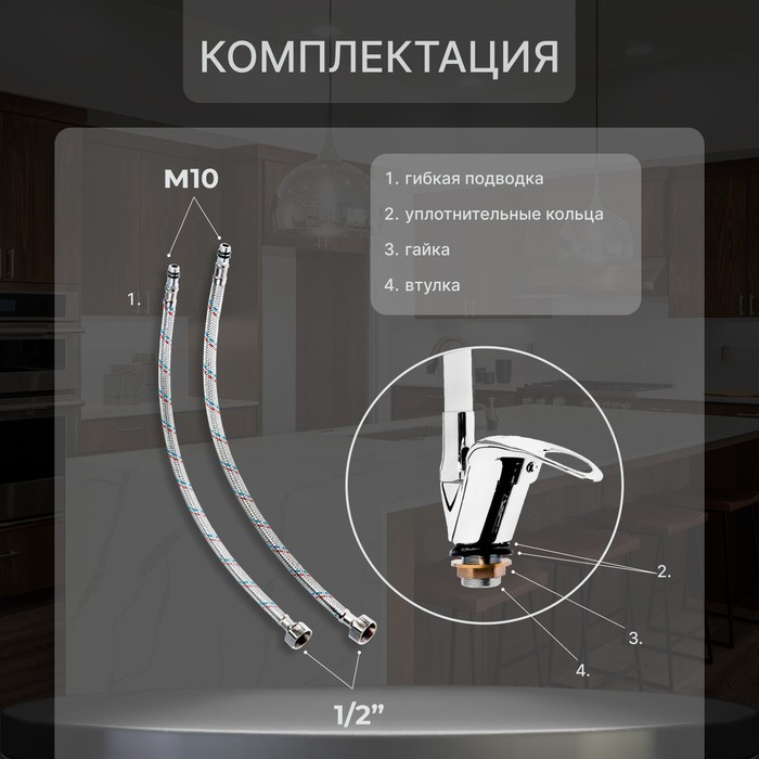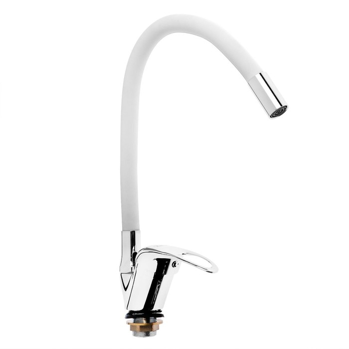 Смеситель для кухни ZEIN Z2110, однорычажный, гибкий излив, картридж 40 мм, белый/хром
