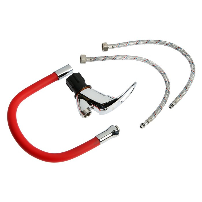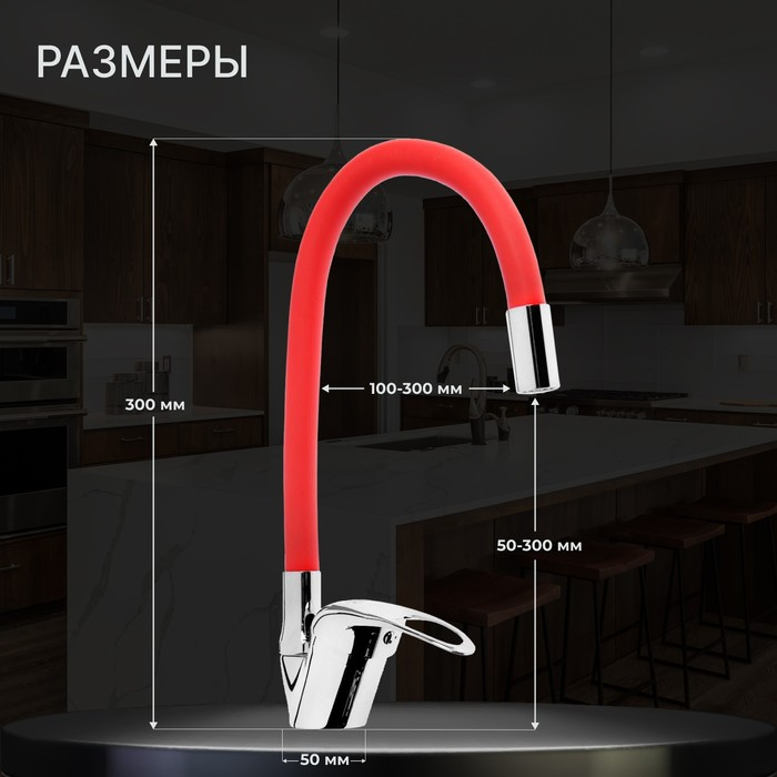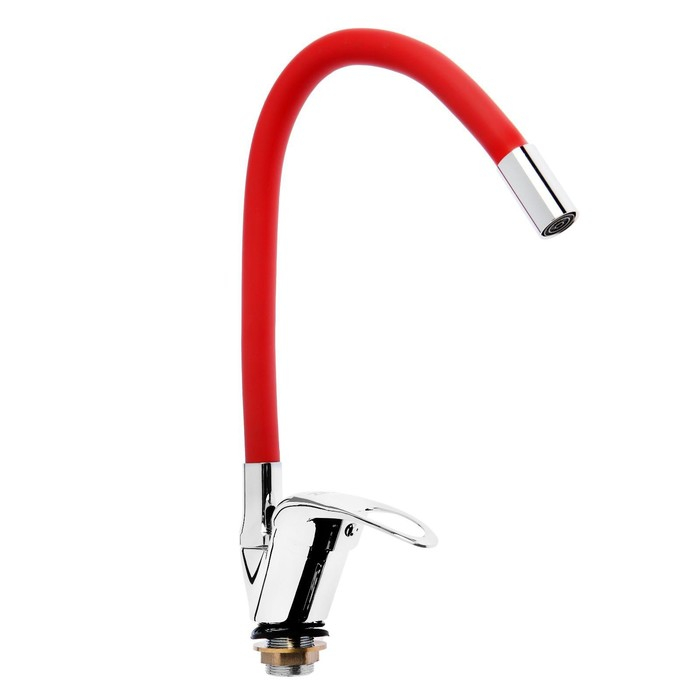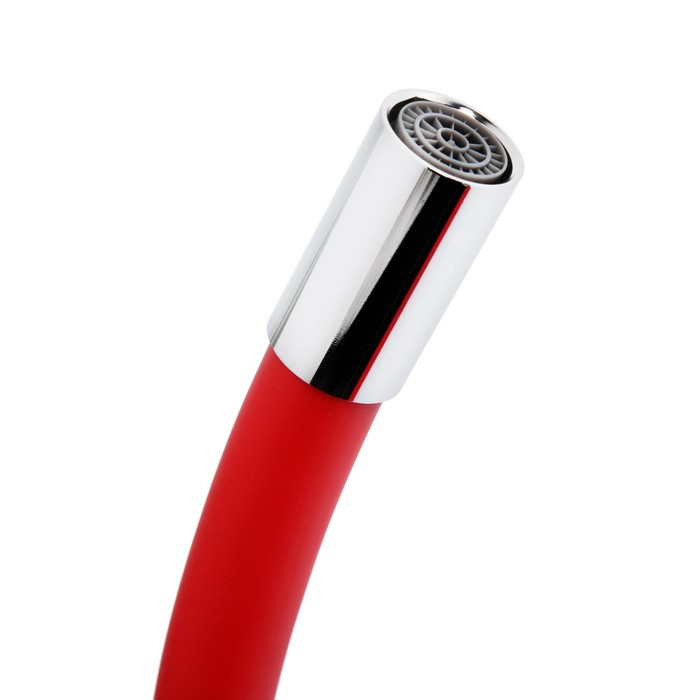 Смеситель для кухни ZEIN Z2113, однорычажный, гибкий излив, картридж 40 мм, красный/хром