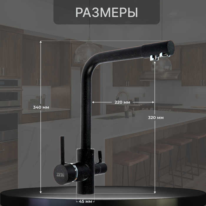 Смеситель для кухни ZEIN Z1303, однорычажный, с выходом для питьевой воды, латунь, черный