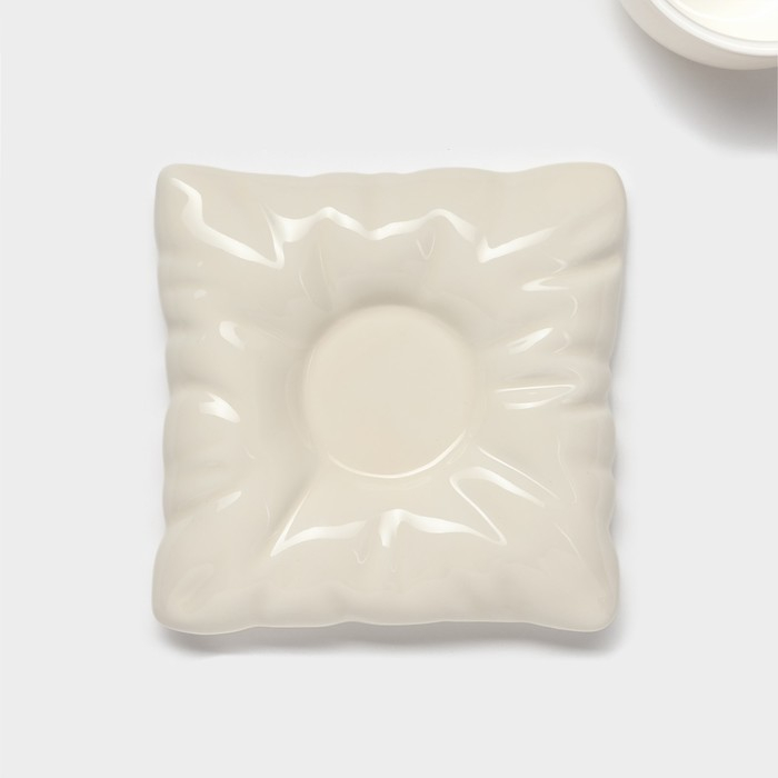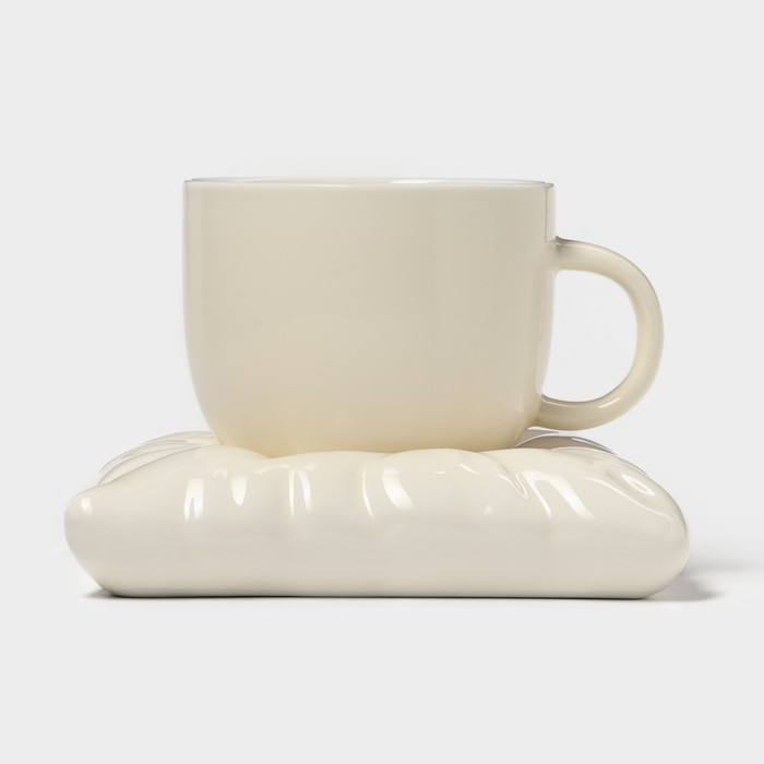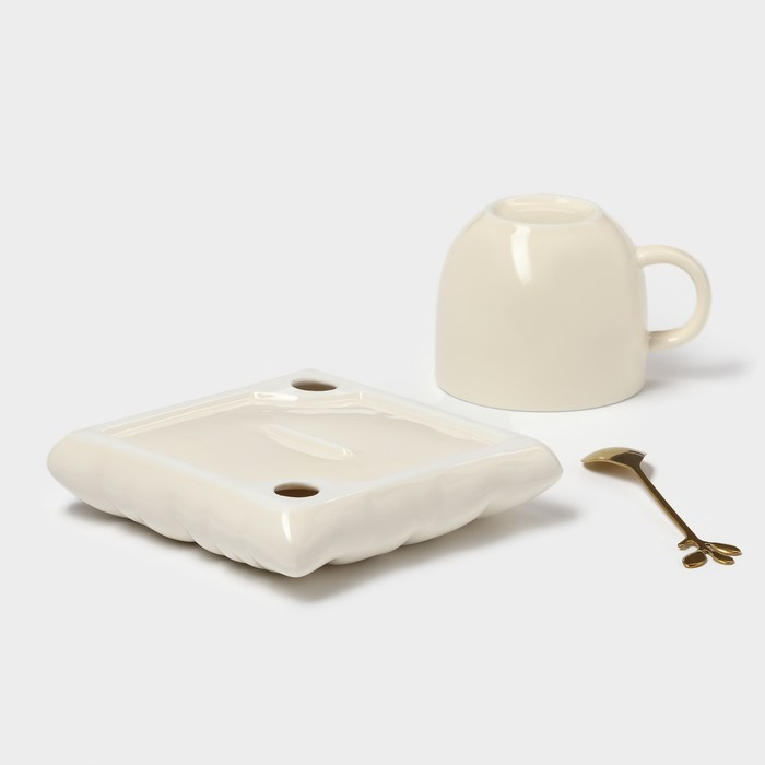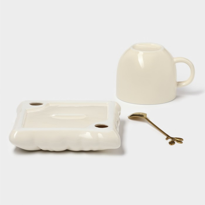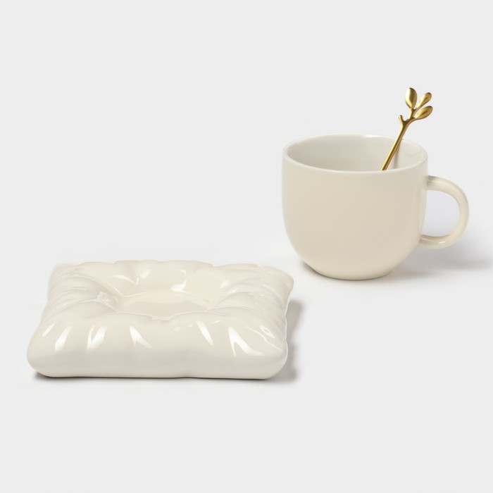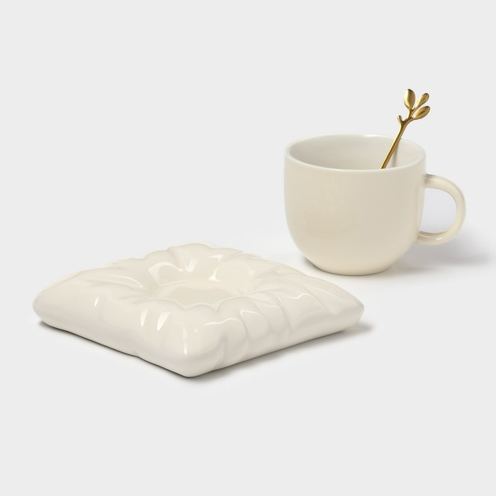 Чайная пара керамическая с ложкой «Зефирка», 2 предмета: чашка 250 мл, блюдце d=13 см, цвет бежевый
