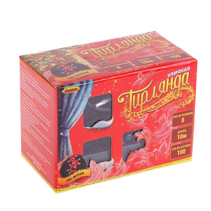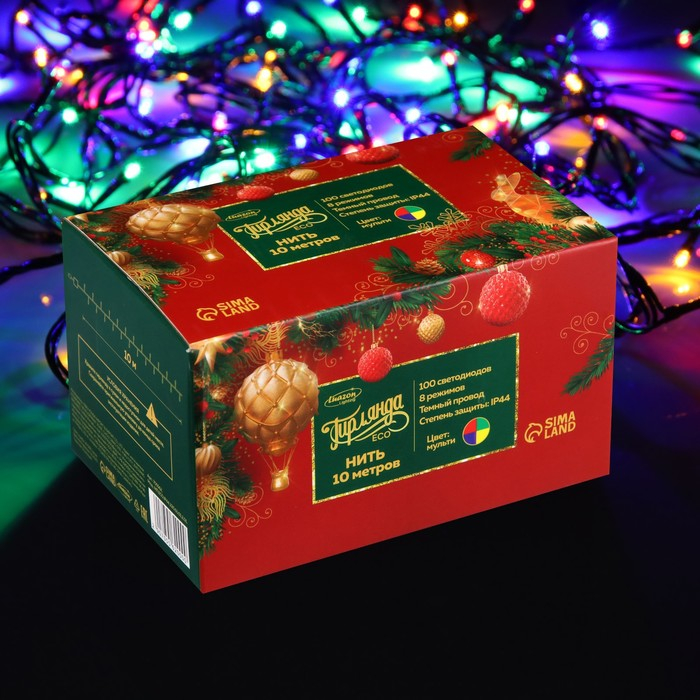Гирлянда «Нить» 10 м, IP44, тёмная нить, 100 LED, свечение мульти, 8 режимов, 220 В