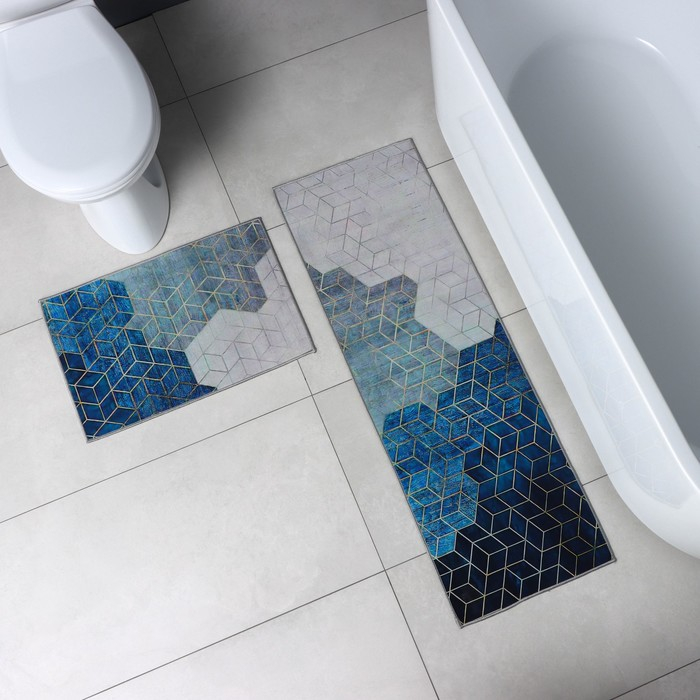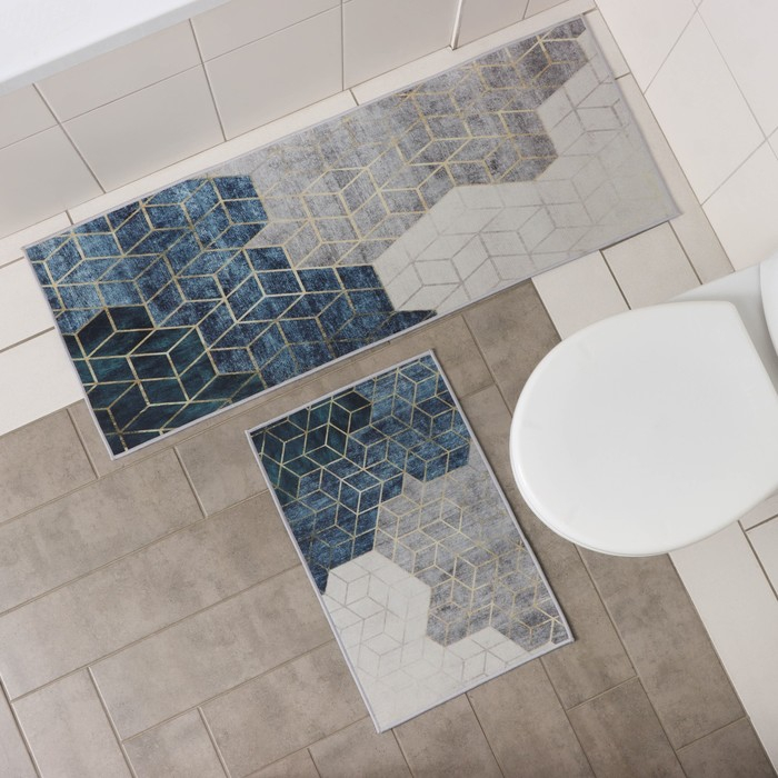 Коврики для ванной и туалета Доляна «Мрамор», 2 шт: 79×50 см, 50×39 см, цвет серый