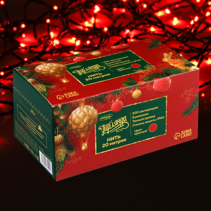 Гирлянда «Нить» 20 м, IP44, тёмная нить, 200 LED, свечение красное, 8 режимов, 220 В