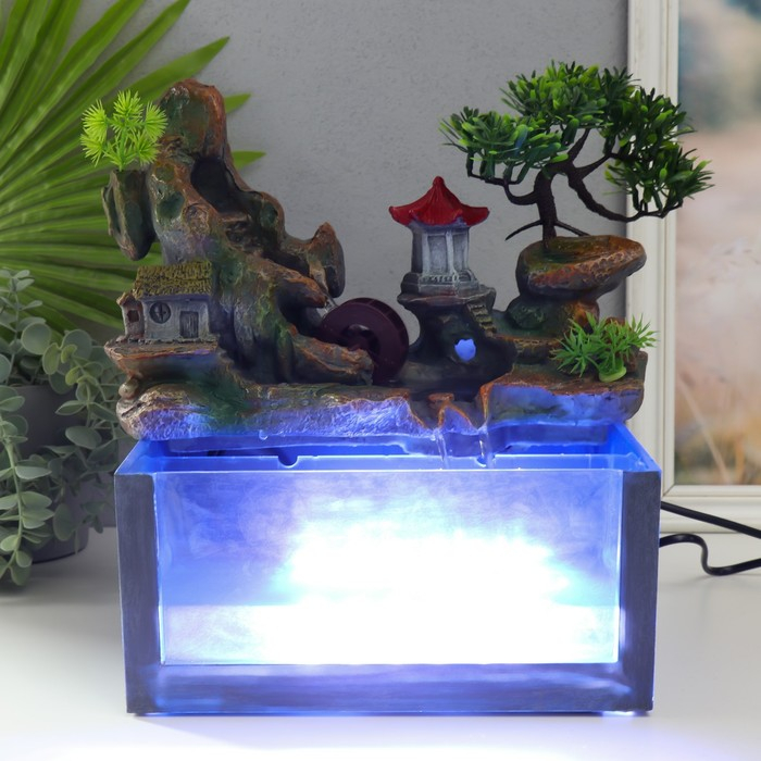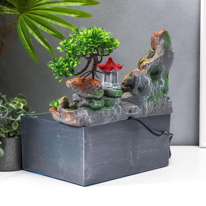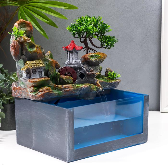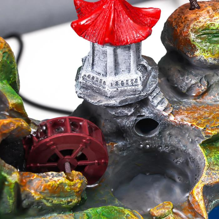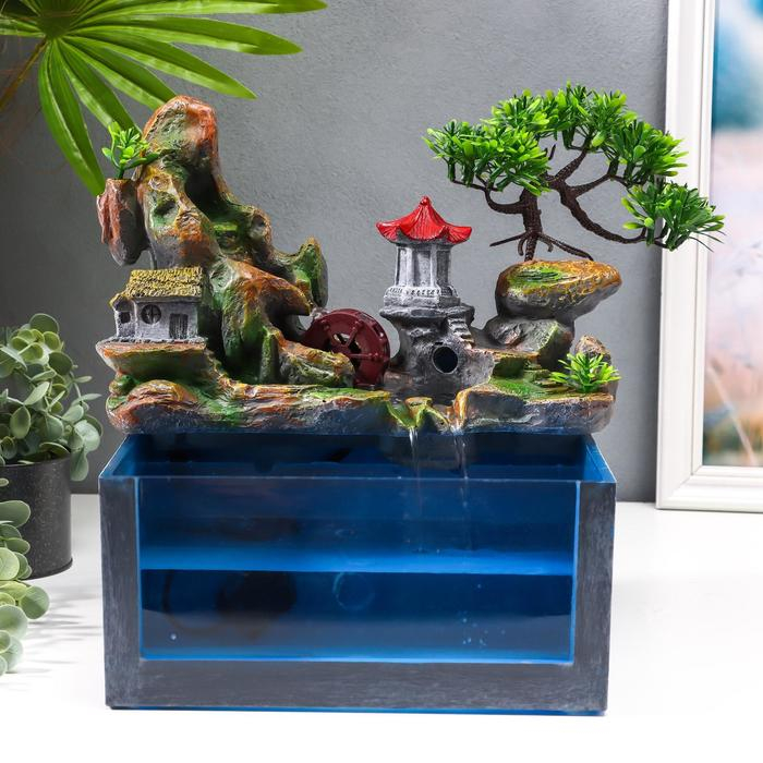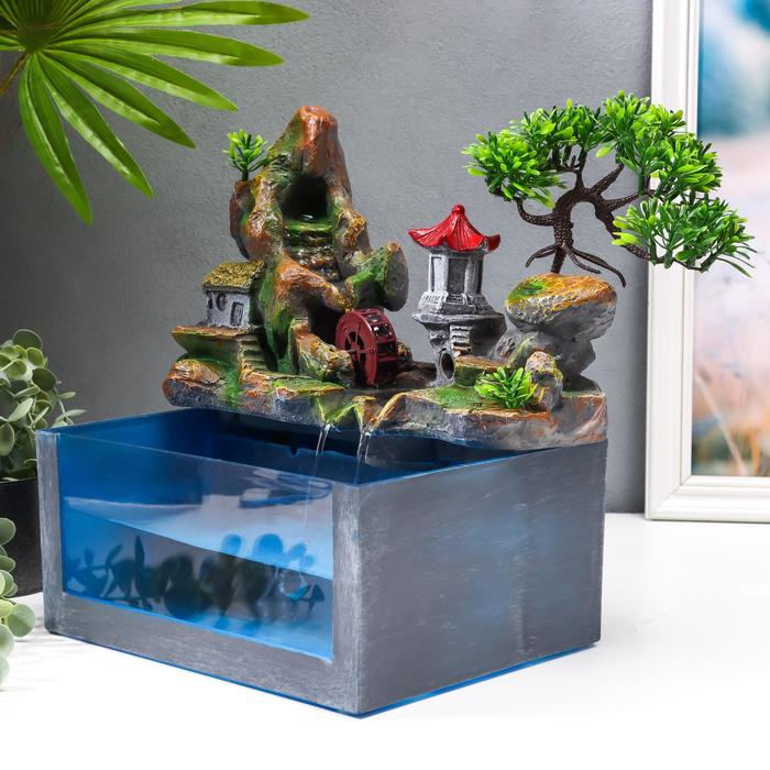 Фонтан настольный от сети, подсветка + аквариум "Пагода на вершине" 32х21х30 см