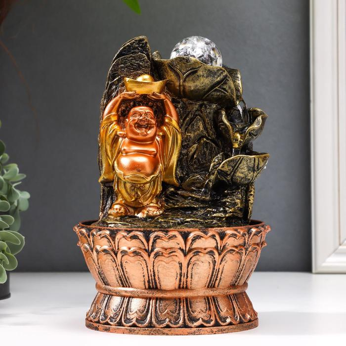 Фонтан настольный от сети, подсветка "Хотей со слитком у горного фонтана" 22,5х15х15 см
