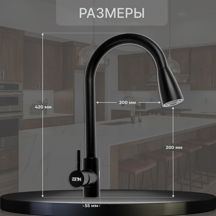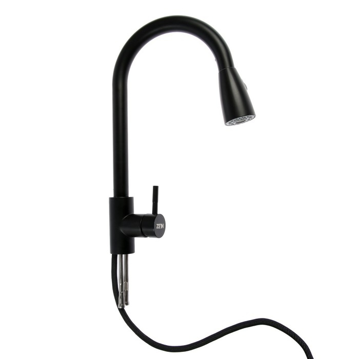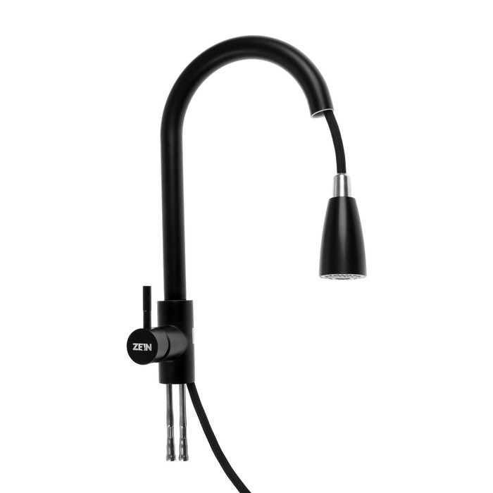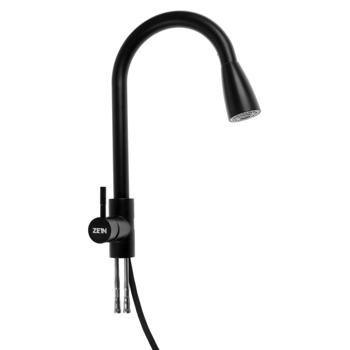 Смеситель для кухни ZEIN Z2571, нержавеющая сталь, с выдвижной лейкой, 2 режима, черный