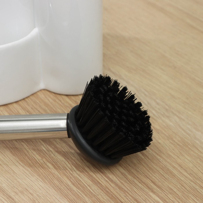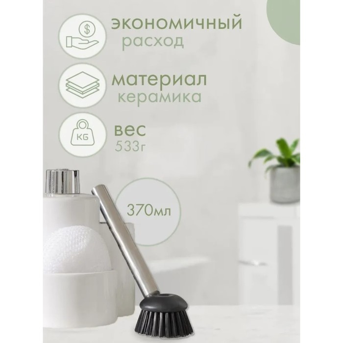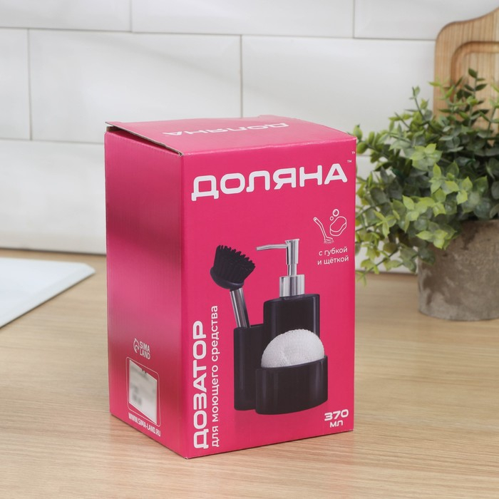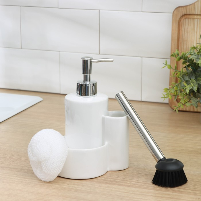 Дозатор для моющего средства Доляна «Милитари», 370 мл, с губкой и щёткой, цвет белый