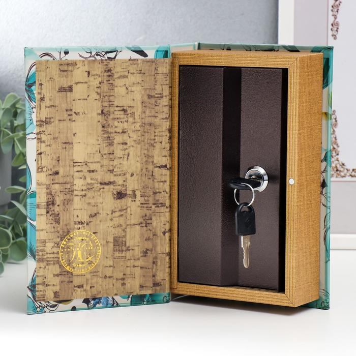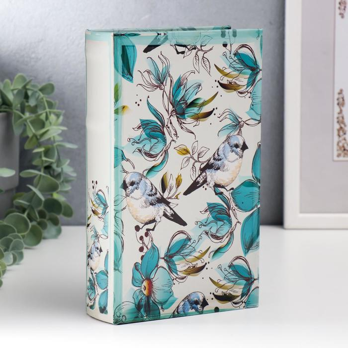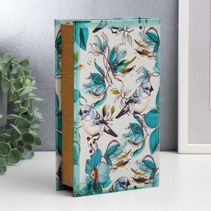 Сейф-книга дерево кожзам "Голубые птички и зелёные цветы" 21х13х5 см