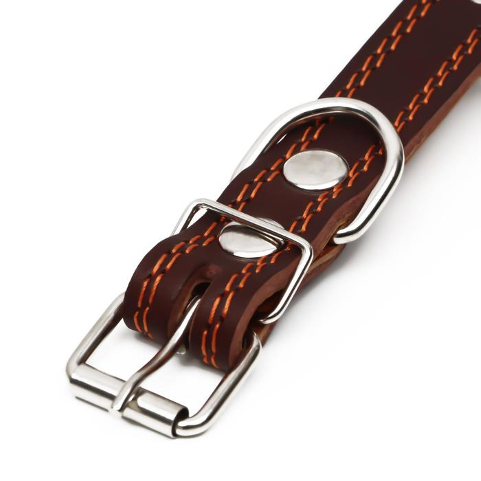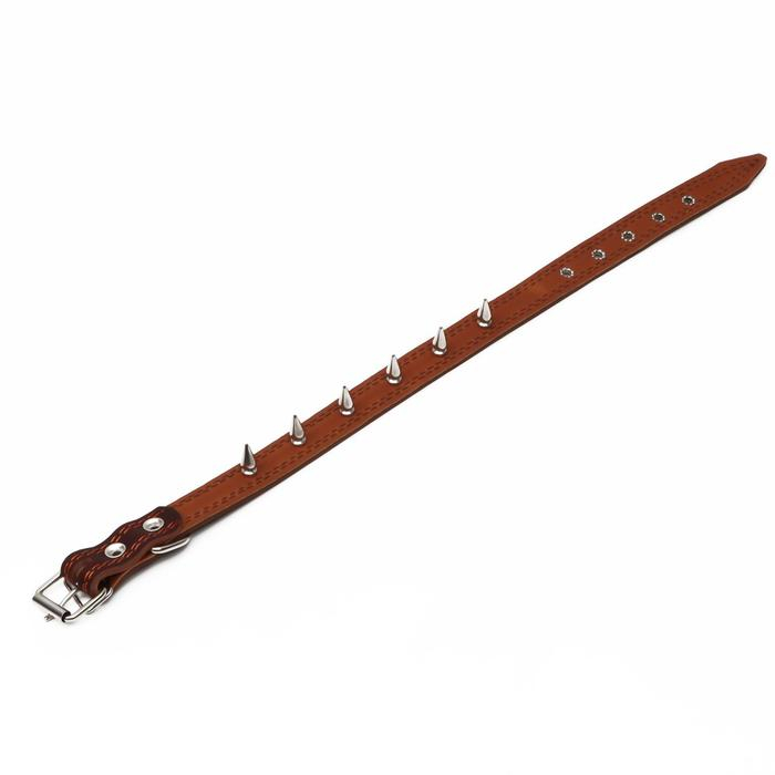 Ошейник кожаный "Строгий шип", 56 х 2.5 см, ОШ 35-45 см, коричневый