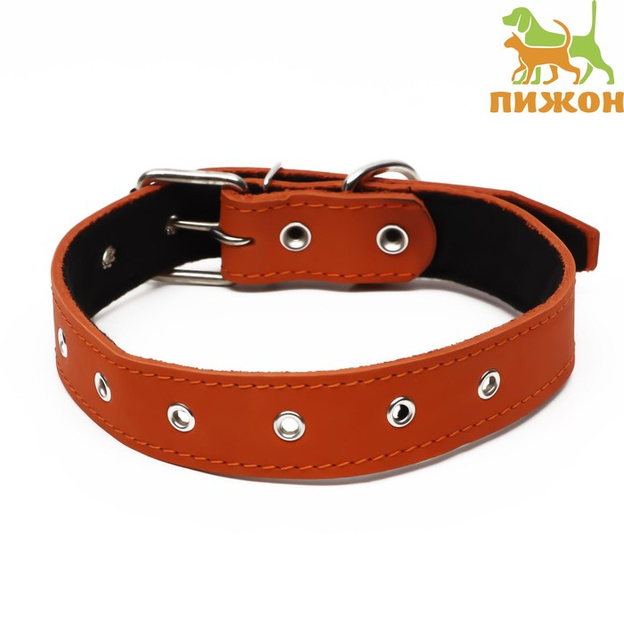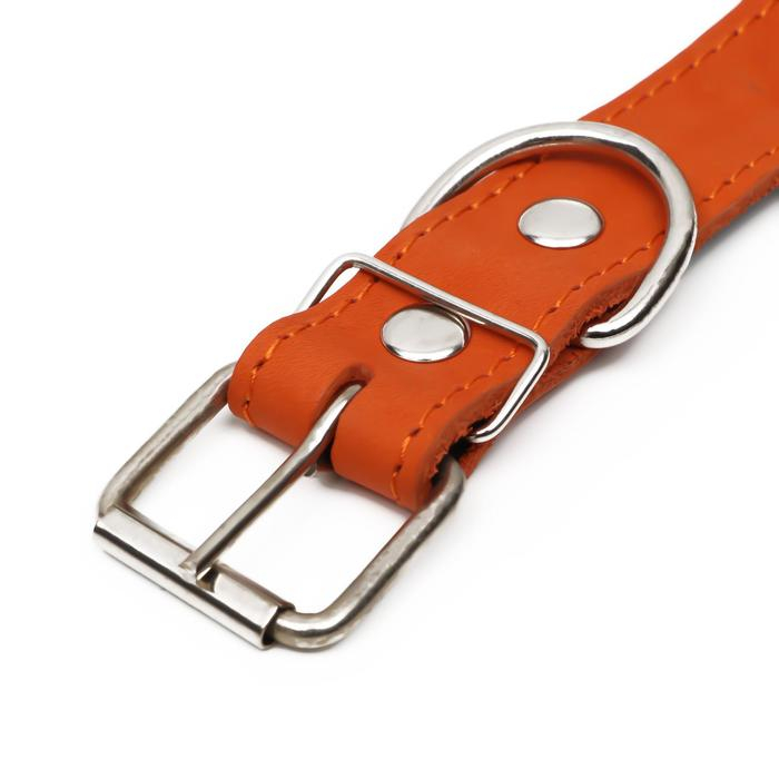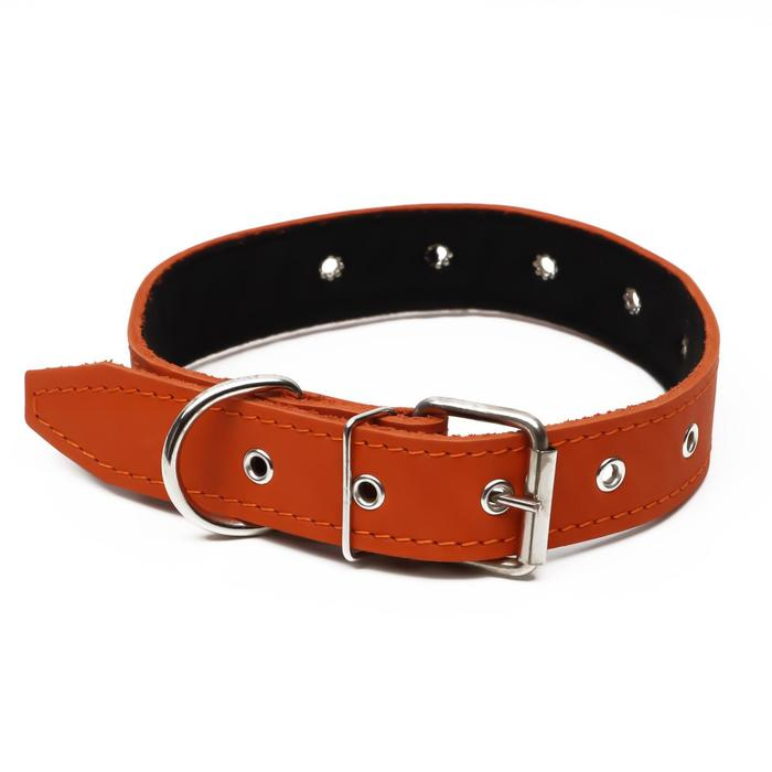 Ошейник кожаный на синтепоне, безразмерный, 71 х 3,5 см, ОШ 29-62 см, оранжевый