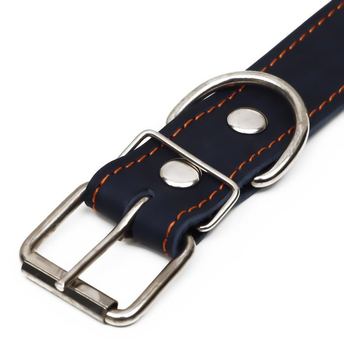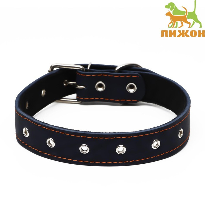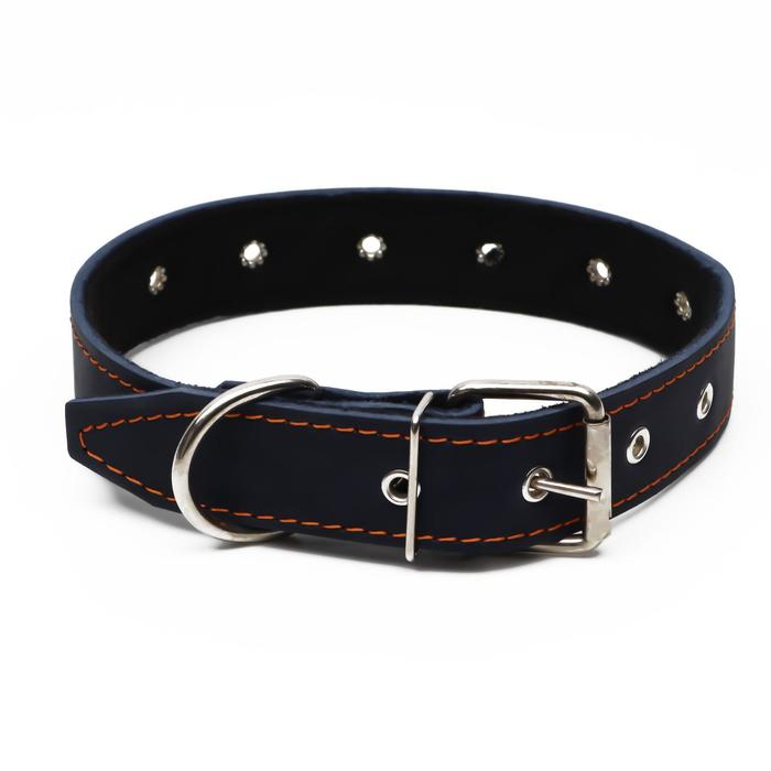 Ошейник кожаный на синтепоне, безразмерный, 71 х 3,5 см, ОШ 29-62 см, синий