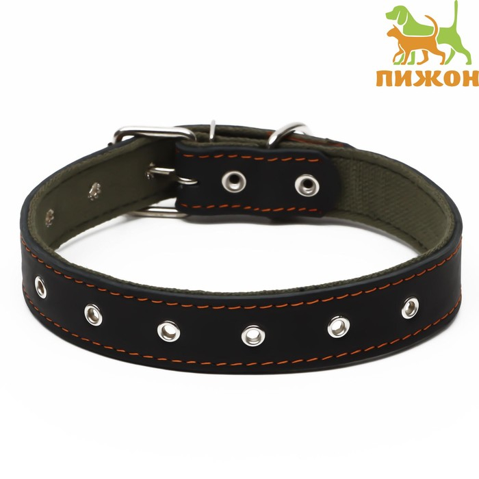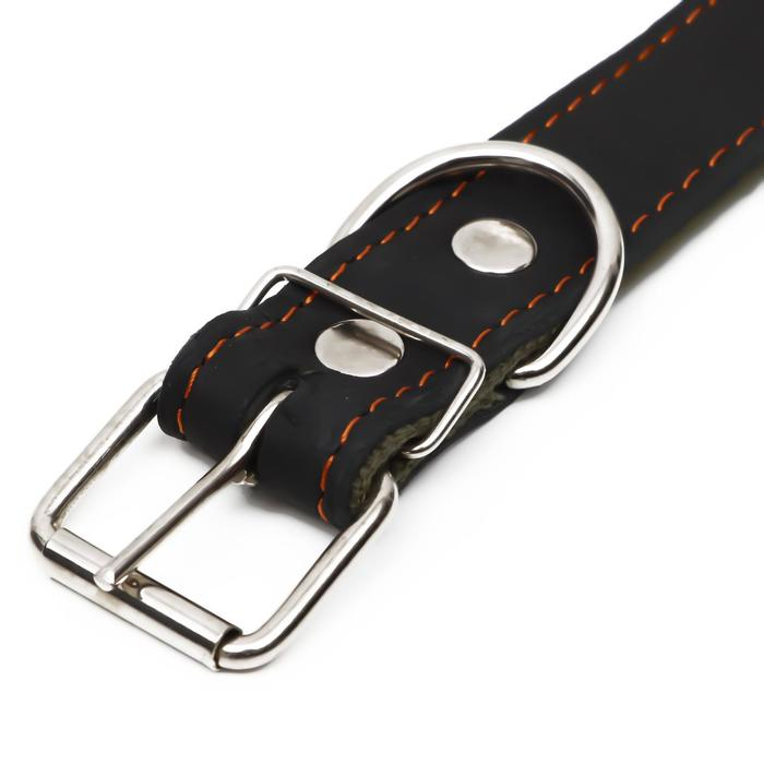 Ошейник кожаный на синтепоне, 70 х 3,5 см, ОШ 45-60 см, чёрный
