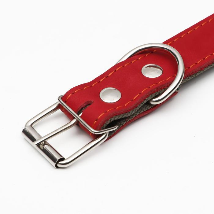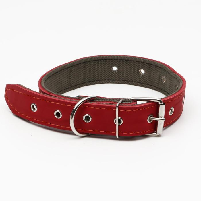 Ошейник комбинированный кожа/брезент, безразмерный, 70 х 3,5 см, ОШ 25-60 см, красный
