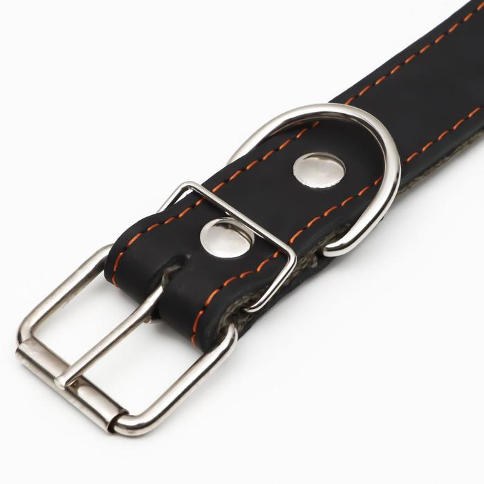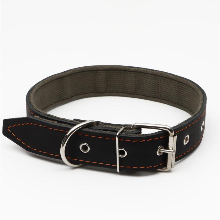 Ошейник кожаный на синтепоне, 70 х 3,5 см, ОШ 45-60 см, чёрный