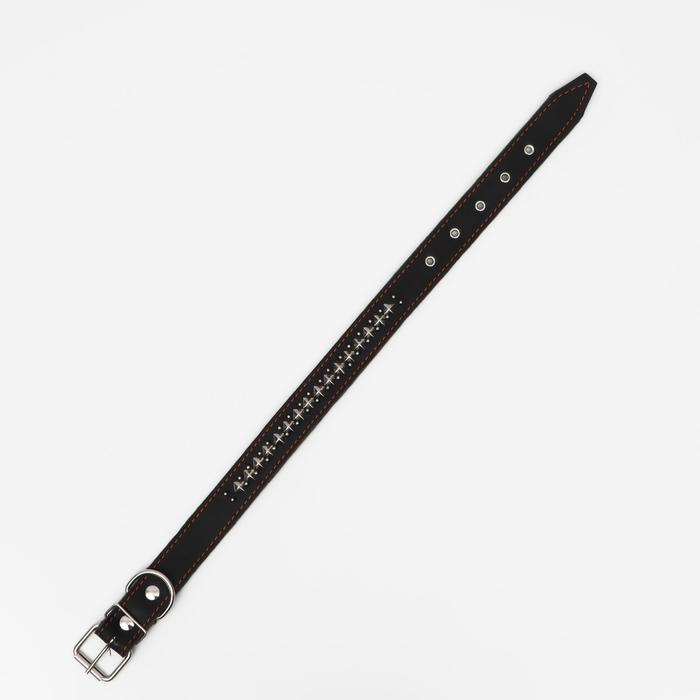 Ошейник кожаный на синтепоне, 70 х 3,5 см, ОШ 45-60 см, чёрный