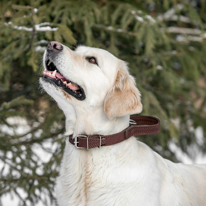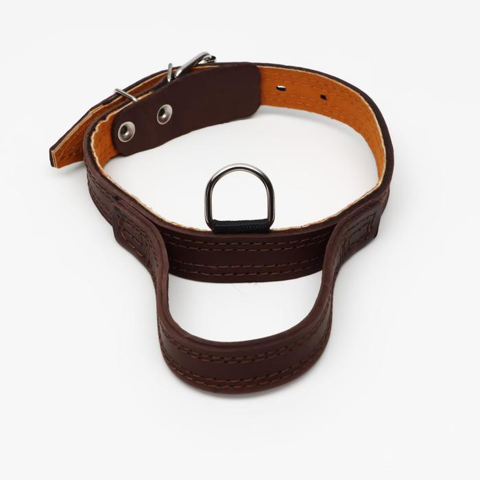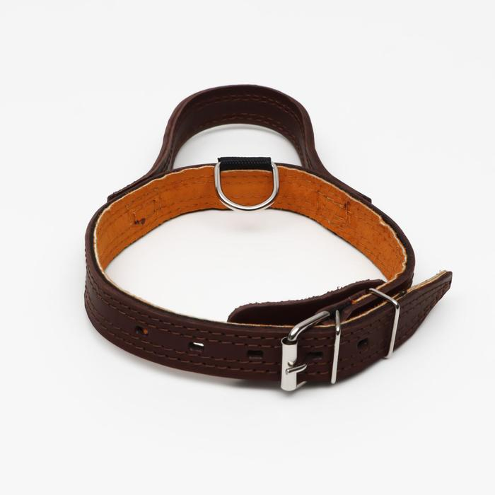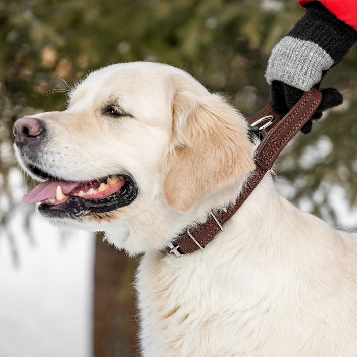 Ошейник кожаный тройной, с ручкой, 57 х 2.5 см, ОШ 35-45 см, коричневый