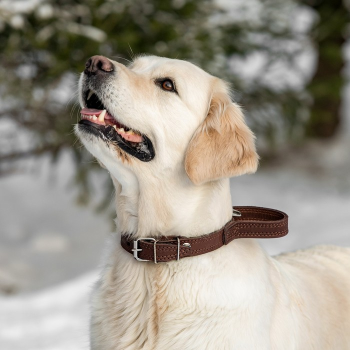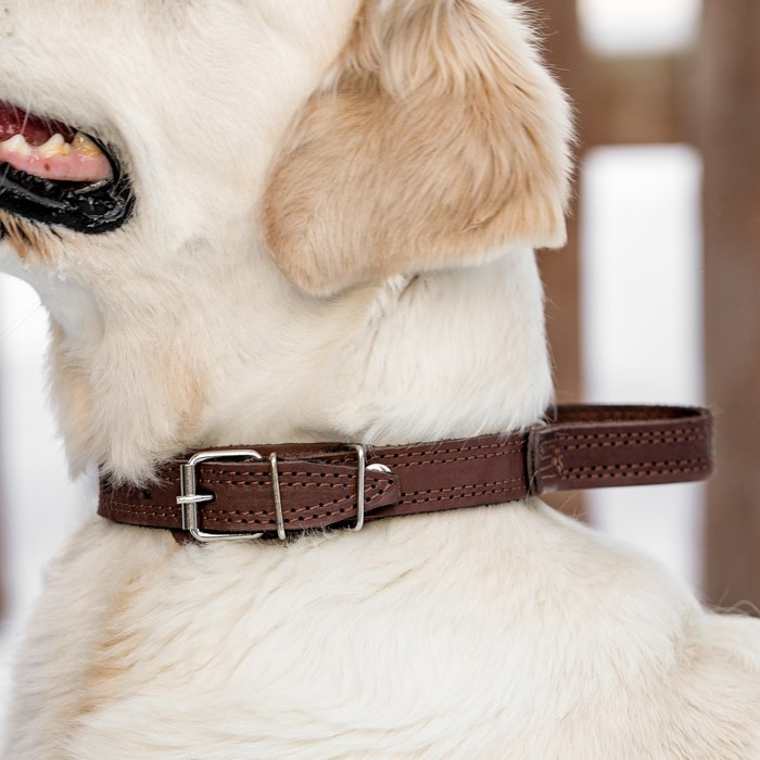 Прогулочный ошейник является неотъемлемой частью арсенала собачника. Ошейник сшит из трех слоев мягкой кожи и прошит толстой капроновой ниткой, для того, чтобы ошейник радовал Вас и Вашего питомца продолжительное количество времени. Ошейники оснащен крепкой ручкой из кожи и полукольцом для пристегивания карабина поводка.