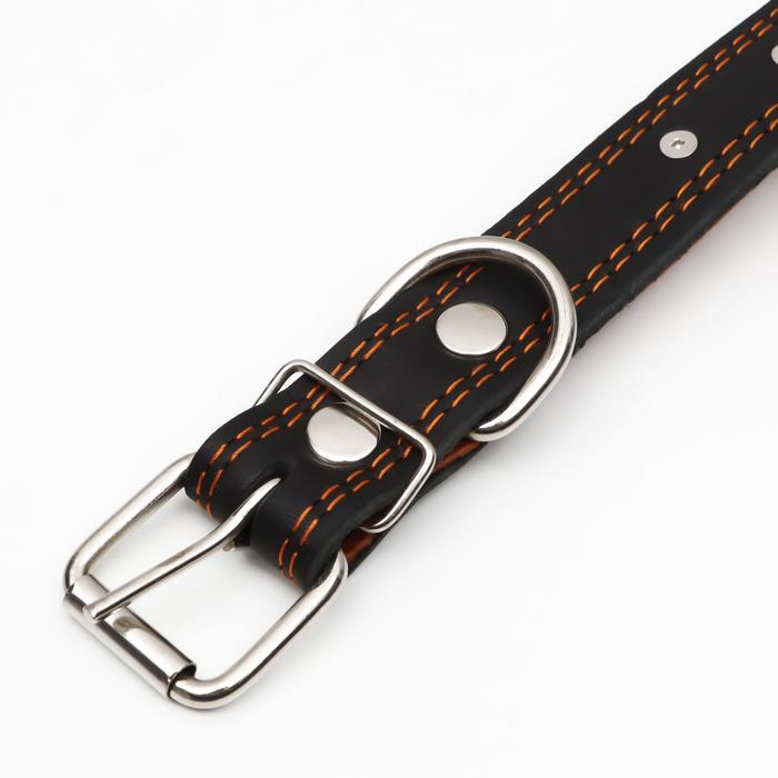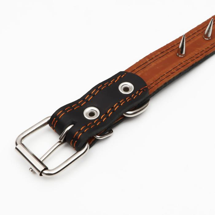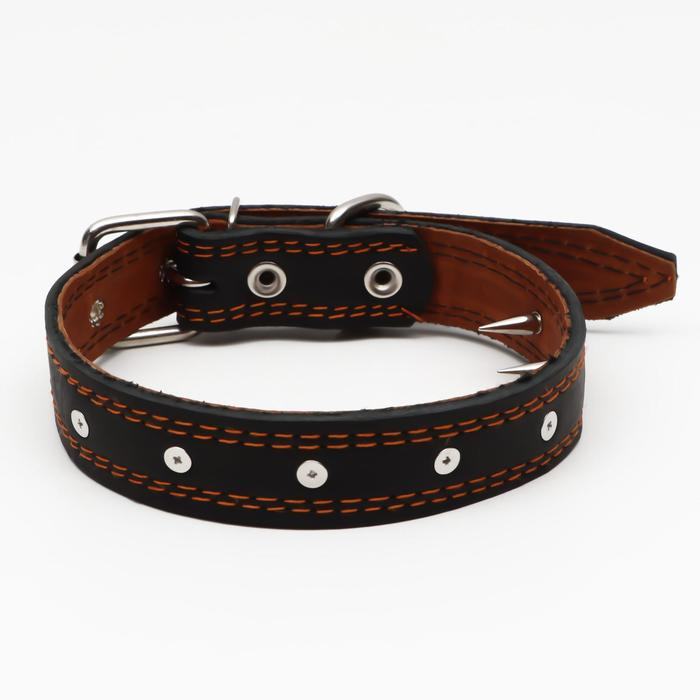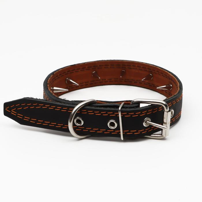 Ошейник кожаный двухслойный шипованный, 63 х 3 см, ОШ 40-55 см, чёрный