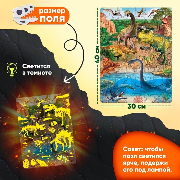 Пазлы светящиеся «Мир динозавров», 88 деталей