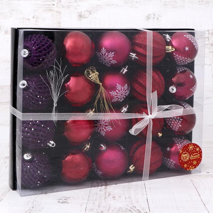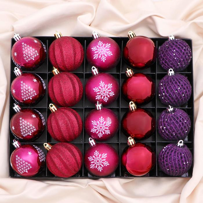 Набор шаров пластик d-6 см, 20 шт "Лаурен снежинка" фиолетово-красный