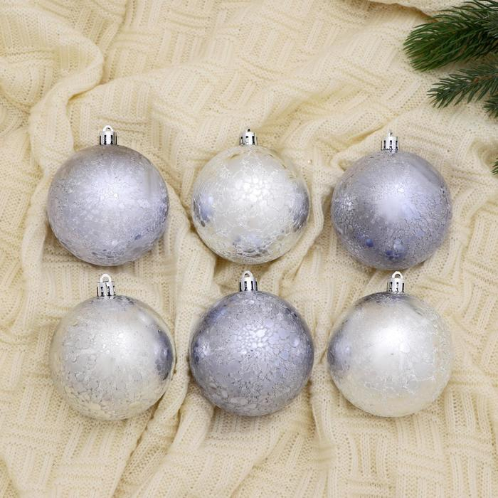 Набор шаров пластик d-8 см, 6 шт "Клоуд метелица" серебро сиреневый