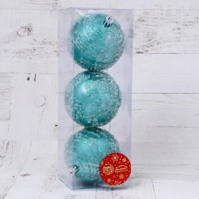 Набор шаров пластик d-8 см, 3 шт "Джейн наледь" голубой