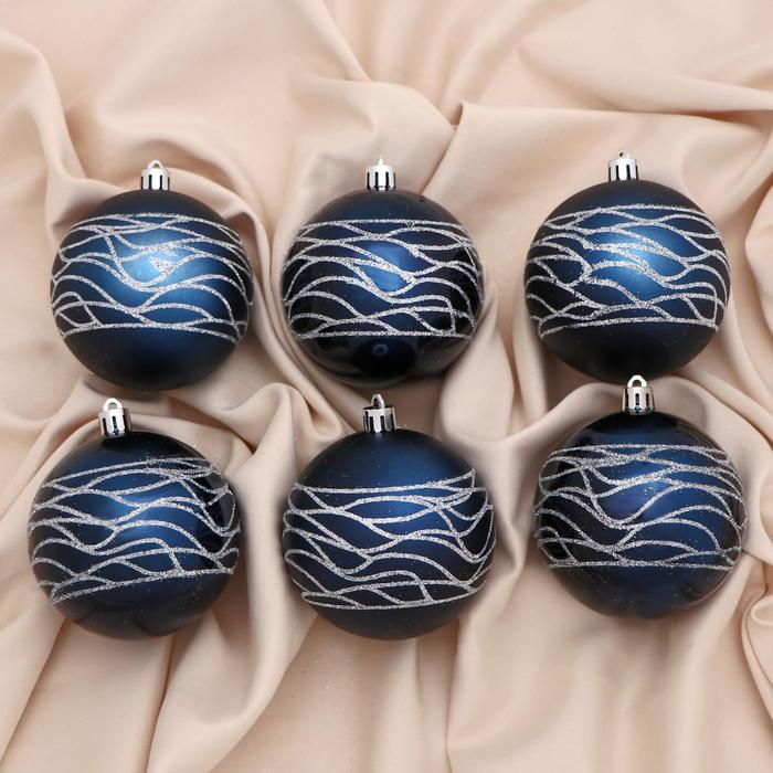 Набор шаров пластик d-8 см, 6 шт "Адель волны" серебристо-синий