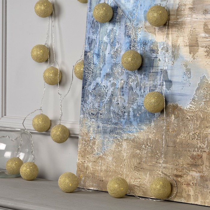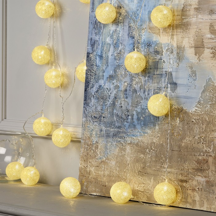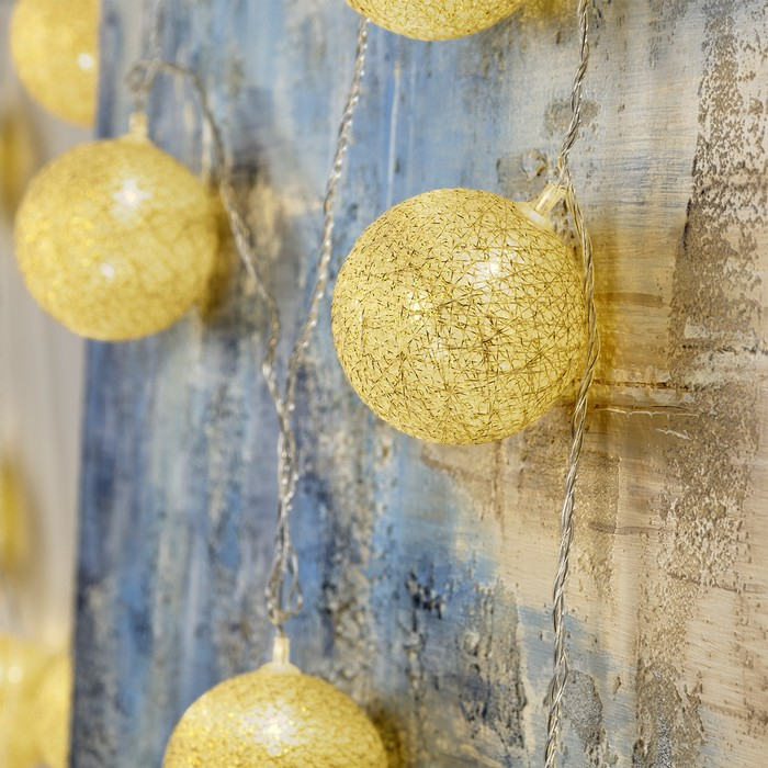 Гирлянда «Нить» 5 м с насадками «Клубки золотистые», IP20, прозрачная нить, 20 LED, свечение тёплое белое, 220 В