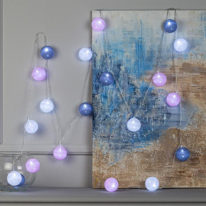 Гирлянда «Нить» 5 м с насадками «Клубки серо-розовые», IP20, прозрачная нить, 20 LED, свечение белое, 220 В