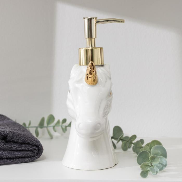 Керамический дозатор для жидкого мыла «Единорог» станет стильным дополнением вашей ванной комнаты или кухни. Такой аксессуар очень удобен в использовании. Просто перелейте жидкое мыло или моющее средство в диспенсер, а когда понадобиться, выдавите необходимое количество лёгким нажатием на помпу дозатора.
