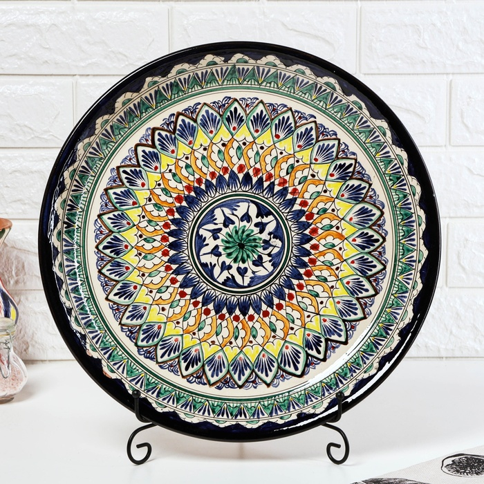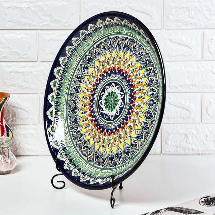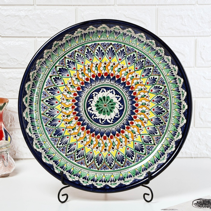 Ляган Риштанская Керамика "Узоры", 37 см, синий, микс