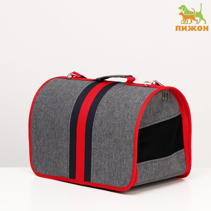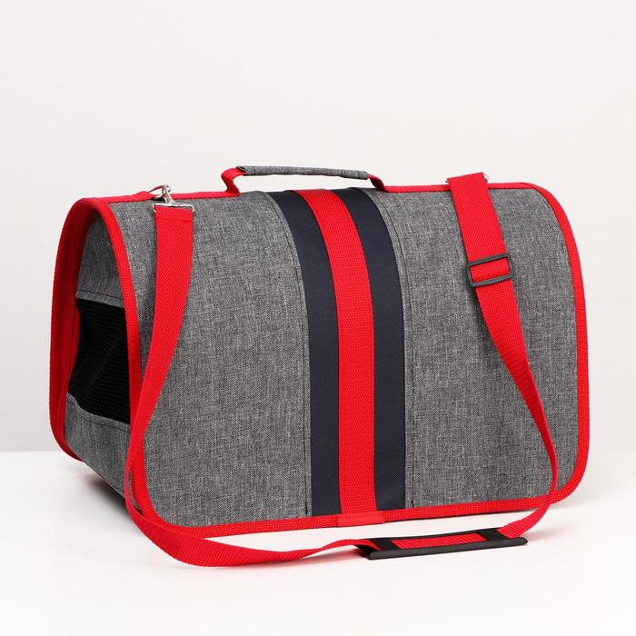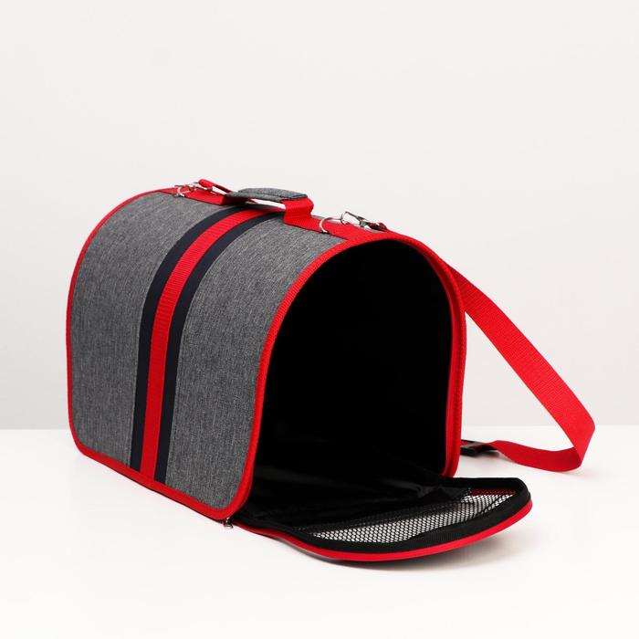 Сумка - переноска для животных, каркасная, складная, 40 х 25 х 26 см, красно-серая