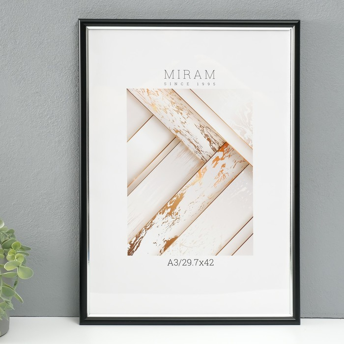 Фоторамка пластик Gallery 29.7х42 см, (А3) 636477, чёрный с серебром (пластиковый экран)